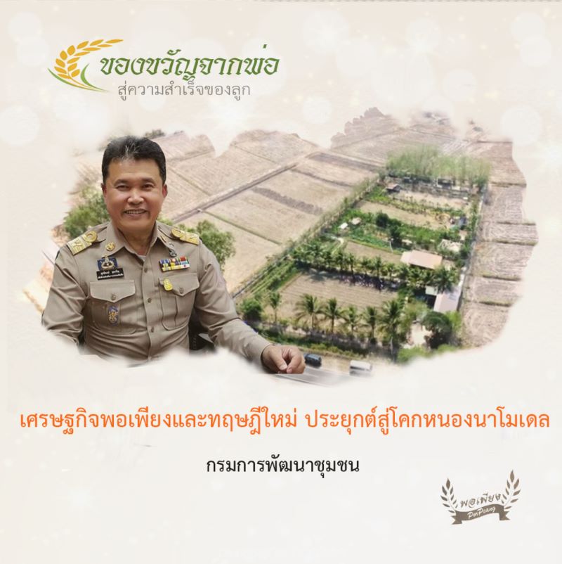โดยเป็นตัวอย่างการใช้หลักเศรษฐกิจพอเพียงในขั้นต้น โดยการทำเกษตรทฤษฎีใหม่นี้